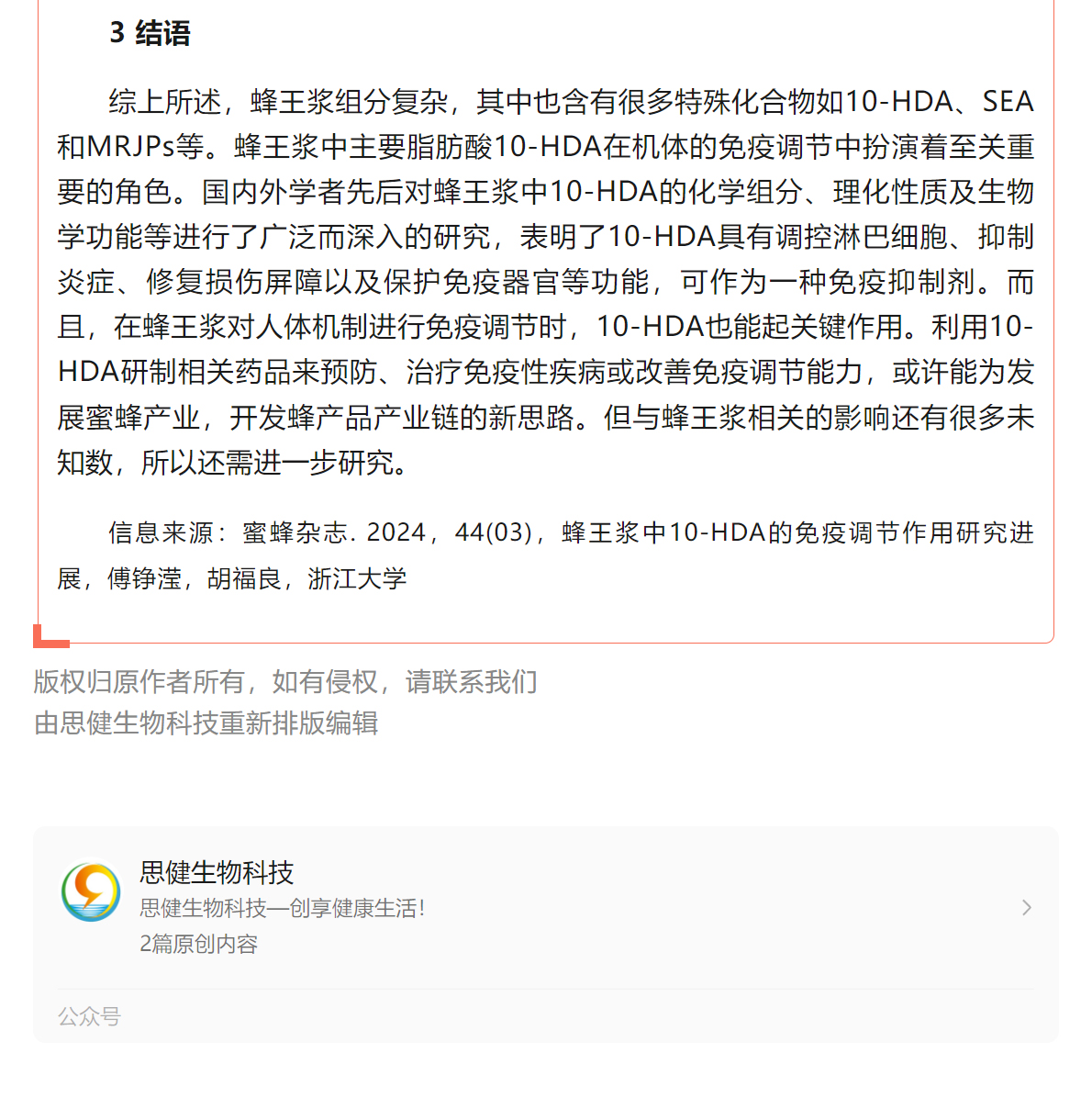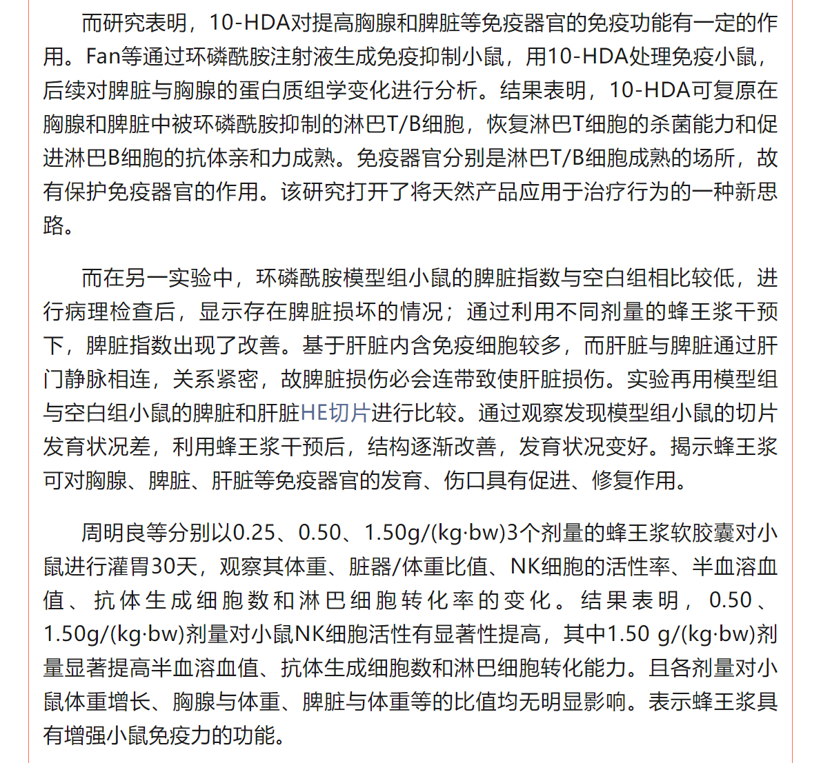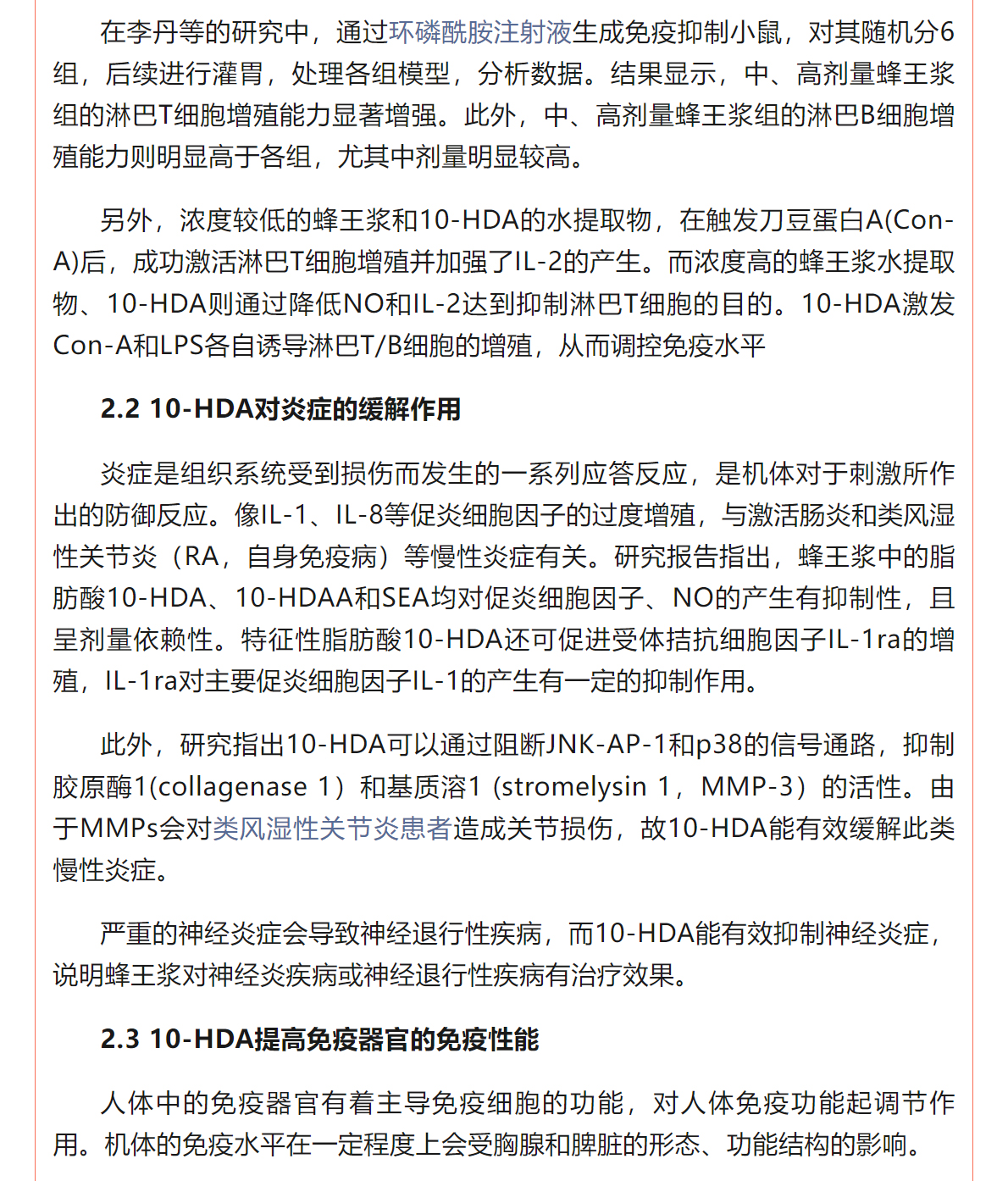 蜂王漿中10-HDA的免疫調節(jié)作用研究進展