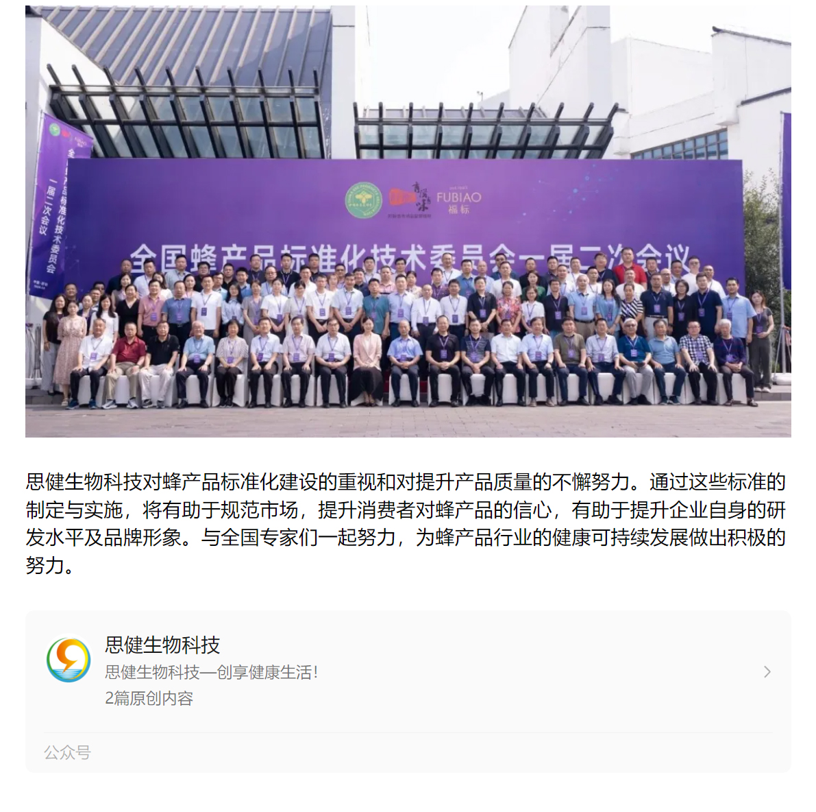 思健生物科技:積極推動蜂產(chǎn)品標(biāo)準(zhǔn)化,共塑甜蜜事業(yè)好未來