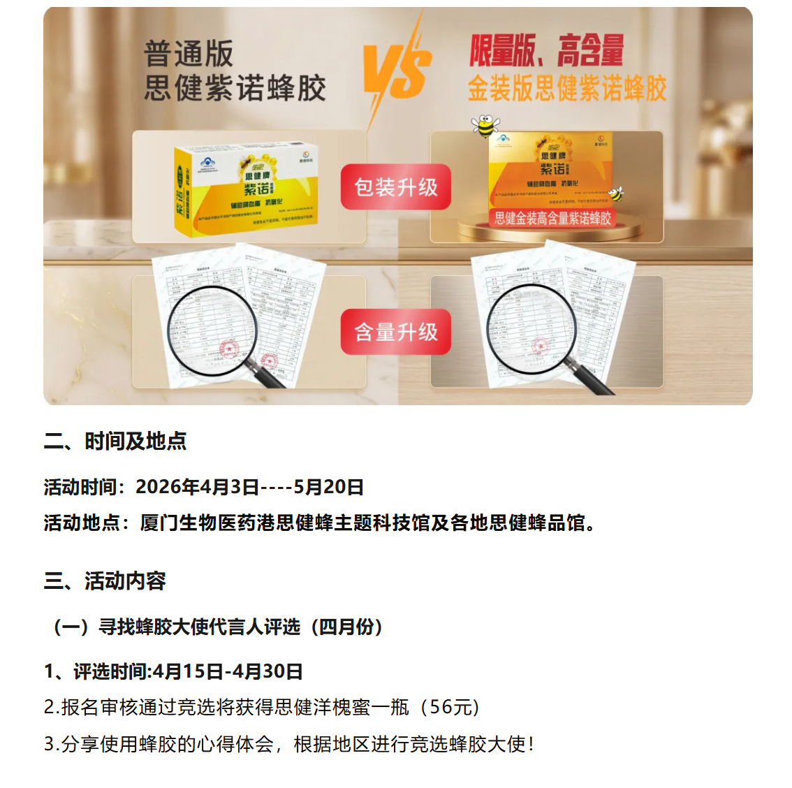 思健生物科技誠邀您共赴廈門出席第九屆中國(廈門)蜂膠高峰論壇:與蜂業(yè)權(quán)威面對面,洞見蜂膠國際新未來